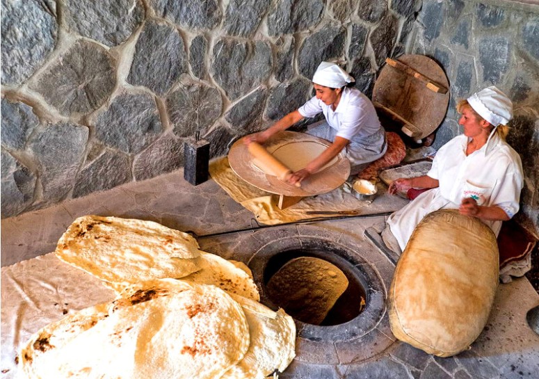 • Выпечка лаваша: Освойте ритмичную технику растягивания и шлепанья теста о стенки глиняной печи.